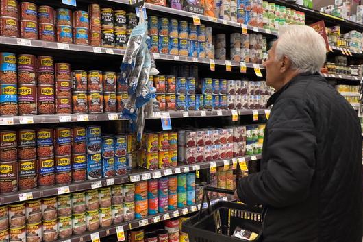 미국 캘리포니아주 로스앤젤레스의 한 마트에서 한 사람이 식료품 코너를 보고 있다. [EPA] |