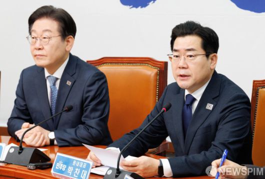 [서울=뉴스핌] 윤창빈 기자 = 박찬대 더불어민주당 원내대표가 26일 오전 서울 여의도 국회에서 열린 최고위원회의에서 모두발언을 하고 있다. 2025.02.26 pangbin@newspim.com