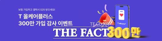 [더팩트ㅣ장혜승 기자] SKT는 26일 휴대폰 분실·파손 보험 'T올케어플러스' 가입자가 300만명을 돌파해 경품 이벤트를 진행한다고 밝혔다.