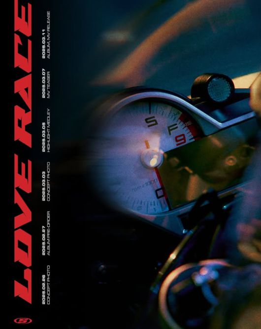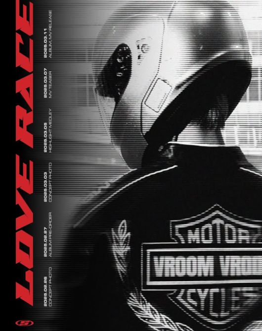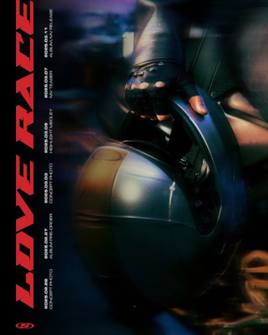 공개된 포스터에는 헬멧을 쓰고 어딘가를 응시하는 뒷모습, 헬멧을 들고 있는 손, 속도계 등의 모습이 담겨 있어 시선을 사로잡는다. 소속사는 ‘TITLE - LOVE RACE, ALBUM RELEASE 2025.03.11 6PM (KST)‘라는 멘트를 함께 게재하며 컴백 일시를 알렸다.