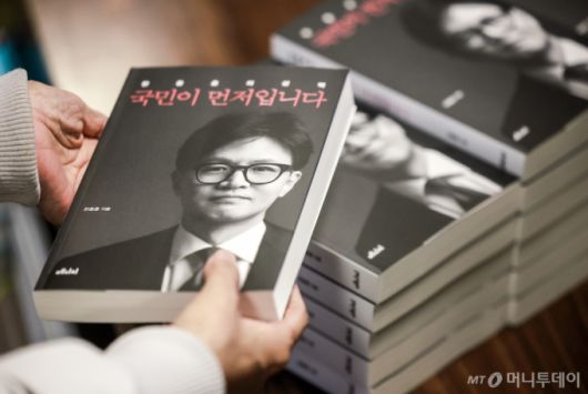 [서울=뉴시스] 정병혁 기자 = 한동훈 국민의힘 전 대표의 저서 '한동훈의 선택 - 국민이 먼저입니다' 발간일인 26일 오전 서울 종로구 교보문고에서 지지자와 시민들이 책을 구매하고 있다. 2025.02.26. jhope@newsis.com /사진=정병혁 |