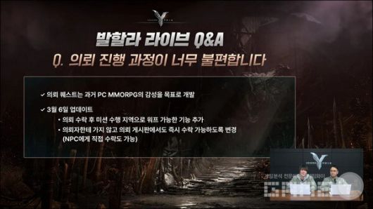 이번 라이브 방송은 '레전드 오브 이미르' 출시 이후 유저에게 많은 지적을 부분에 대한 개발자의생각과 개선방법 등에 대해 설명했다. QA 형식으로 이번 라이브 방송을 정리했다.
