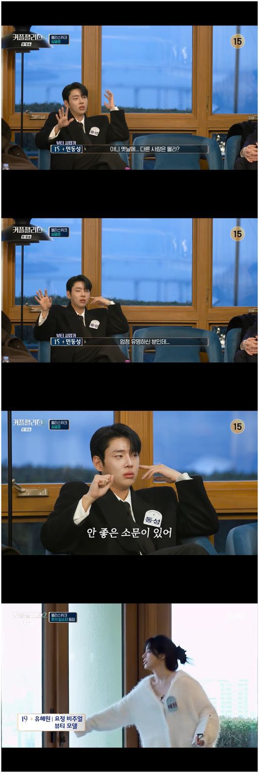 과연 뛰어난 미모로 '메기'의 역할이 될 것인가. 유혜원은 아직 커플 매칭이 되지 않은 싱글이었다. 이런 가운데, 남성 출연자만 모여 있는 곳에서 남자 15번 뷰티 사업가 민동성은 “여자 19번 유혜원, 엄청 유명하지 않냐. 옛날에 안 좋은 소문이 있다”라며 “기사로 났는데"라고 말해 황재근의 눈을 크게 뜨게 만들었다.