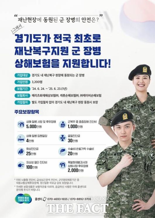 경기도가 전국 최초로 추진한 '재난복구지원 군 장병 상해보험 가입 지원 사업' 안내 포스터 /경기도 |