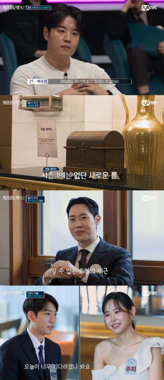스페셜 MC 가희, 허경환과 함께 합숙 관문인 팰리스위크도 본격적으로 막을 올렸다. 특히 시즌1에는 없던 ‘비밀 데이트’라는 새로운 룰이 공개되며 뺏고 뺏기는 전쟁을 예고하기도.