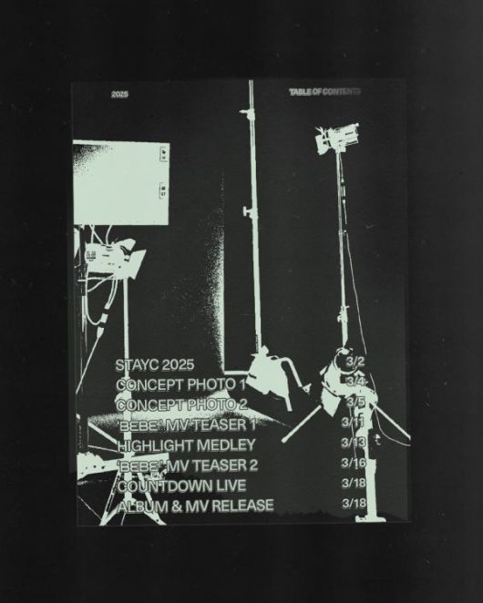 흑백의 오묘한 분위기를 자아내는 스케줄러 이미지에 따르면 스테이씨는 3월 2일 스테이씨 2025 필름 공개를 시작으로 2개 버전의 콘셉트 포토와 싱글 5집 타이틀곡 ‘BEBE(베베)’의 뮤직비디오 티저 2편, 하이라이트 메들리 등 다채로운 콘텐츠를 순차적으로 공개한다.