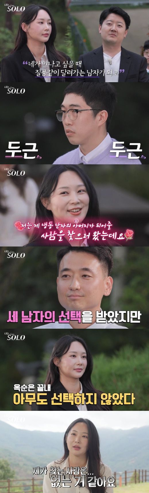 그러나 24기 옥순은 "저는 제 냉동난자의 아버지가 되어줄 사람을 찾으러 왔는데 이성적 끌림을 주는 분이 단 한 분도 없었다"라며 최종 선택을 하지 않았다.