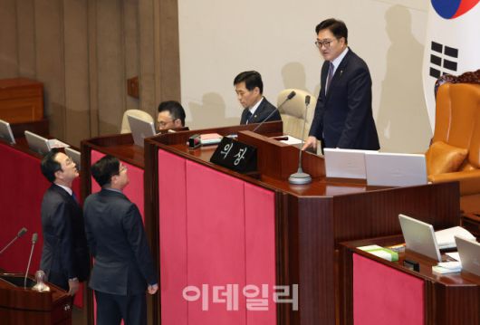 우원식 국회의장은 이날 국회 본회의에서 상정될 예정이었던 상법 개정안에 대해 “오늘 본회의에는 상정하지 않기로 했다”며 “상법 개정안에 대해 교섭단체 간 견해 차이가 크고, 토론과 협의를 위한 시간이 필요하다는 요청도 있었다”고 말했다. 그는 “의장으로서 최대한 교섭단체 간 협의를 독려하기 위해 결정한 것”이라며 “다음 본회의까지 최대한 협의를 해주기 바란다”고 양당에 당부했다.