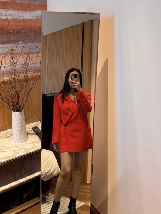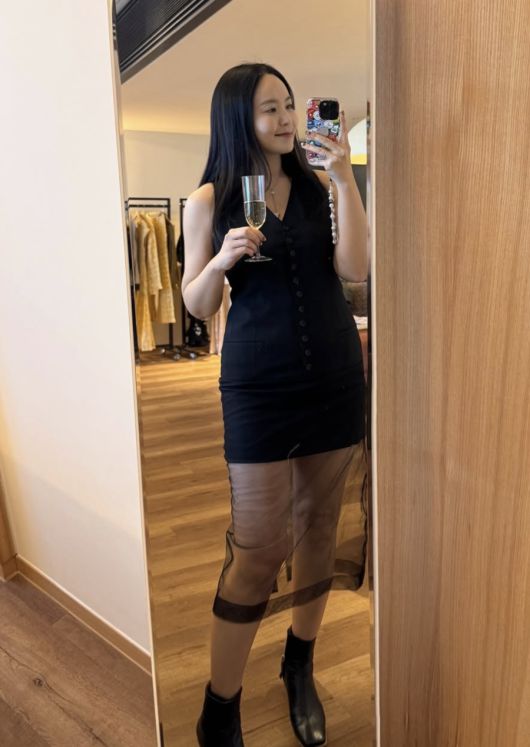 그중 가장 눈길을 끄는 것은 시스루 미니원피스와 강렬한 레드 컬러의 미니 착장. 파격적인 룩에 본인 역시 쑥스러운지 앞서 올린 비빔국수를 먹는 일상 영상을 언급하기도 했다.