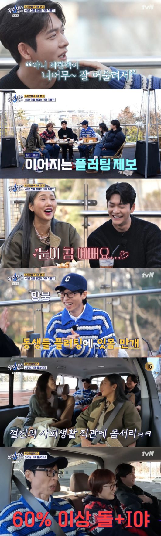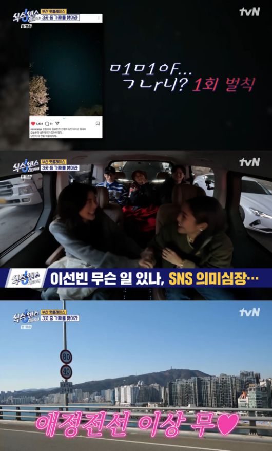 27일 방송된 tvN '식스센스: 시티투어'(이하 '식스센스')에서는 유재석, 송은이, 고경표, 미미가 게스트 강태오, 이선빈과 함께 부산에서 가짜 찾기에 도전한 장면이 전파를 탔다.