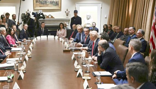 도널드 트럼프 미국 대통령이 26일 워싱턴 백악관에서 열린 집권 2기 첫 각료회의에서 EU를 원색적으로 비판했다. 그는 유럽 주요국이 미국산 자동차와 농산물 등을 충분히 수입하지 않는다며 “유럽산 자동차를 비롯해 사실상 모든 제품에 약 25%의 관세를 곧 부과할 것”이라고 밝혔다.