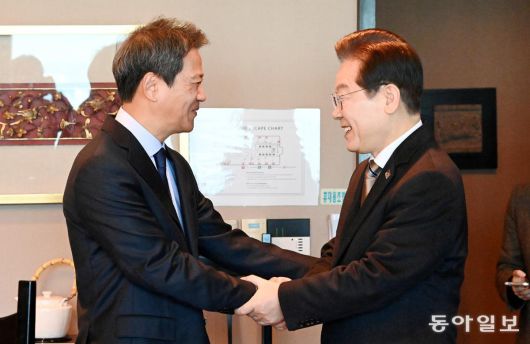 임종석 만난 이재명 더불어민주당 이재명 대표(오른쪽)가 27일 서울 영등포구 여의도의 한 식당에서 임종석 전 대통령비서실장과 악수하고 있다. 이날 이 대표는 “정상적이고 상식적인 세상을 만드는 일에 모두가 힘을 합쳐야 한다”며 당내 통합을 강조했다. 이에 임 전 실장은 “저는 개인적으로 별다른 욕심은 없어서 앞으로도 대표께 좋은 소리보단 쓴소리를 많이 할 것”이라고 말했다. 장승윤 기자 tomato99@donga.com |