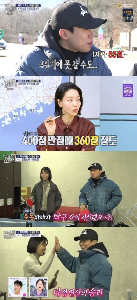 이를 스튜디오에서 지켜보던 박나래는 “제 점수도 놀라운데 양세형 씨도 많이 놀랍다”며 “저는 원하는 목표점이 있었다. 400점 만점에 160점인데 그걸 맞췄다”라고 고백했다. 주우재는 “저도 무너져 있는 사람들 사이에 섞여 있으면 자랑 할텐데 서울대 출신이 계시니까. 저는 500점 만점에 420점 정도 받았다”며 “이 점수로는 서울대 근처도 못 간다”고 설명했다.