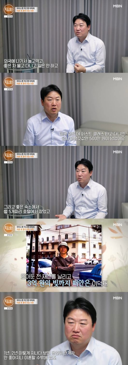 "반백수고 생활이 어려워지는데 어떤 여자가 좋아하겠나"라고 한탄한 이덕재는 "1년, 2년 이렇게 지나면 당연히 관계가 안 좋아지니 이혼할 수밖에 없다"고 덧붙였다.