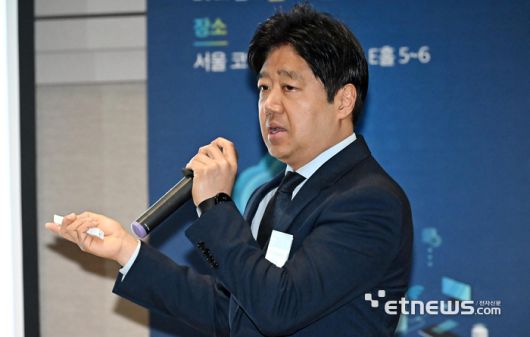국가망보안체계(N²SF) 전망과 대응 콘퍼런스가 28일 서울 강남구 코엑스에서 열렸다. 최영철 에스지에이솔루션즈 대표가 '국가망보안체계와 제로트러스트 아키텍처 오버레이 구축전략'을 주제로 기조발표하고 있다. 이동근기자 foto@etnews.com |