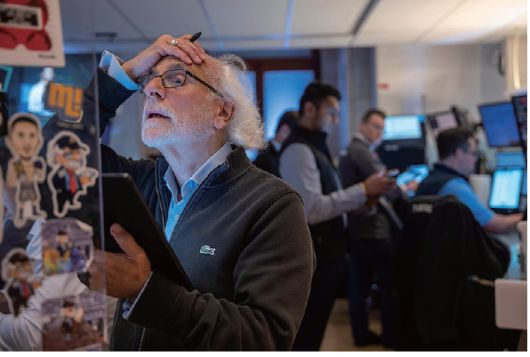 미국 뉴욕증권거래소(NYSE)에서 한 트레이더가 실망감을 나타내고 있다. /AFP연합뉴스 |