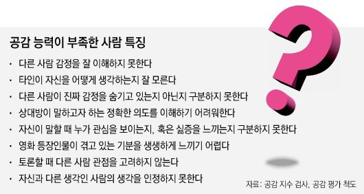주위에서 ‘공감 능력 떨어진다’고 핀잔을 줘도 변하지 않는 사람이 있다. 태어날 때부터 ‘공감 능력 제로(0)’로 태어났기 때문일까. 반대로 ‘공감 과잉’으로 다른 사람 감정에 휘둘리며 늘 피곤하게 사는 사람도 있다. 공감이 메마르거나, 과하게 흘러넘쳐 사회생활에 문제가 되는 이들에게 차지도 뜨겁지도 않은 공감의 ‘골디락스’로 갈 방법은 없는지 상, 하편에 걸쳐 알아보자.