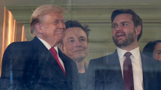 ▲ 도널드 트럼프 미국 대통령(왼쪽)과 일론 머스크 테슬라 최고경영자(가운데), J.D. 밴스 부통령 당선인