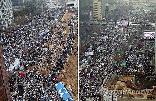 민주당은 이날 집회에 지도부를 포함해 당 소속 의원 130여명이 참석했으며, 집회 추산 인원은 10만명이라고 밝혔다.