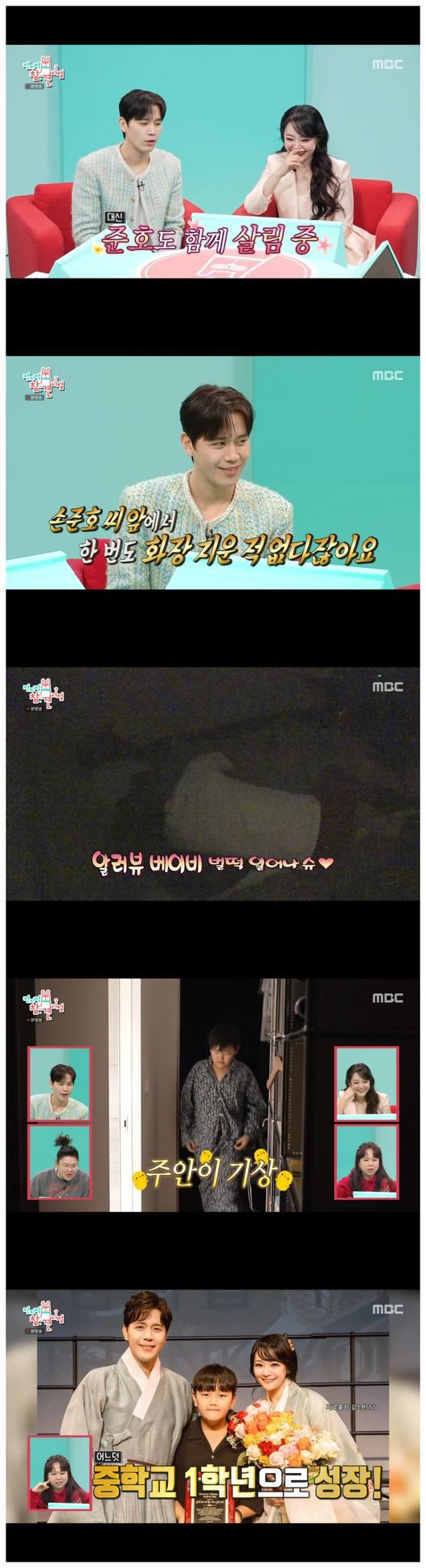 이날 손준호와 김소현의 아들 손주안이 등장했다. 손준호는 아들을 꼭 껴안으며 "마이 베이비, 얼른 일어나"라고 말했고, 김소현은 "마이 러버, 일어났어?"라며 다정히 물었다. 손주안이 "아빠 없으면 불 다 켜고 있잖아"라며 농담을 하자 손준호는 아들의 볼을 아프지 않게 꼬집으며 "뭐라고 했어, 귀염둥이?"라고 말했다. 이들 부부는 아들 주안을 부를 때 겹치는 애칭이 단 하나도 없을 정도로 다양한 사랑의 언어로 아들을 불렀다.
