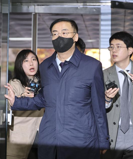 아들 특혜채용 혐의를 받는 김세환 前선거관리위원회 사무총장이 22일 서울 서초구 서울중앙지방법원에서 열린 영장실질심사(구속 전 피의자 심문)에 출석하고 있다. 2024.11.22. [서울=뉴시스] |