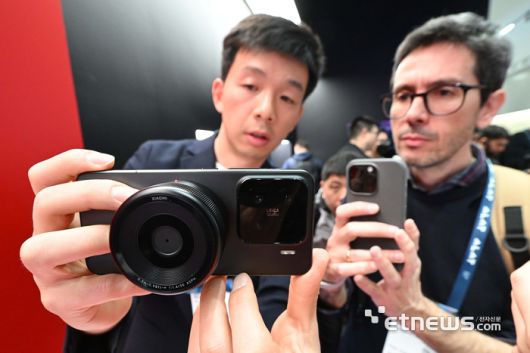 세계 최대 이동통신 박람회 MWC25(모바일 월드 콩그레스)가 '융합, 연결, 창조(Converge, Connect, Create)'를 주제로 3일(현지시간) 스페인 바르셀로나 피라 그란 비아에서 열렸다. 샤오미 부스에서 관람객이 라이카 모듈이 탑재된 샤오미 스마트폰을 체험하고 있다.