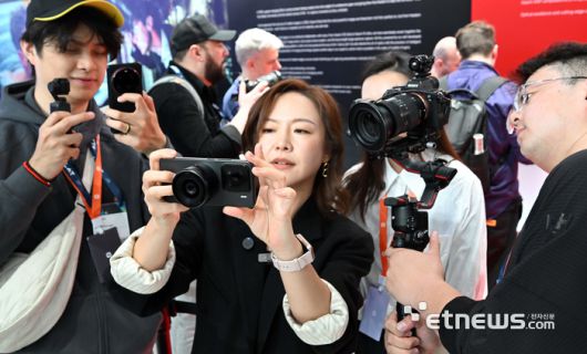 세계 최대 이동통신 박람회 MWC25(모바일 월드 콩그레스)가 '융합, 연결, 창조(Converge, Connect, Create)'를 주제로 3일(현지시간) 스페인 바르셀로나 피라 그란 비아에서 열렸다. 샤오미 부스에서 관람객이 라이카 모듈이 탑재된 샤오미 스마트폰을 체험하고 있다.