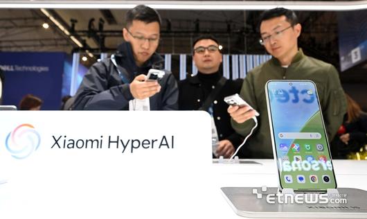 세계 최대 이동통신 박람회 MWC25(모바일 월드 콩그레스)가 '융합, 연결, 창조(Converge, Connect, Create)'를 주제로 3일(현지시간) 스페인 바르셀로나 피라 그란 비아에서 열렸다. 샤오미 부스에서 관람객이 인공지능(AI) 탑재 스마트폰 '샤오미15' 시리즈를 체험하고 있다.