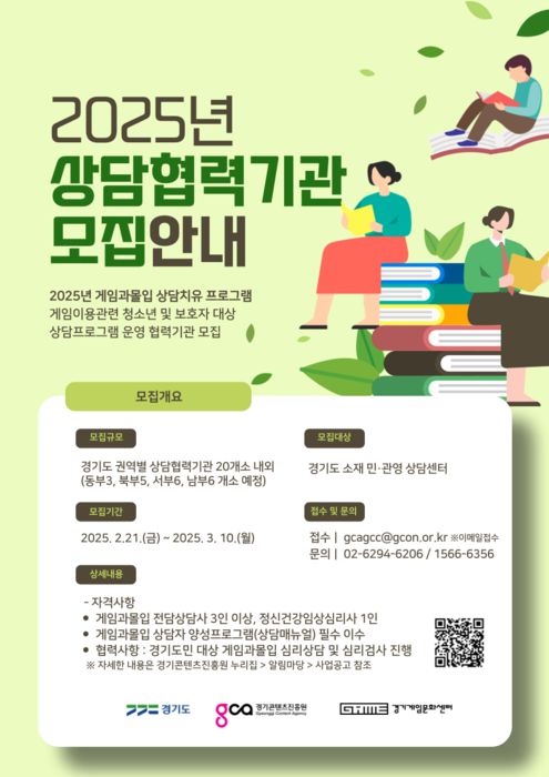 경기콘텐츠진흥원(원장 탁용석) 경기게임문화센터는 '2025년 게임과몰입 상담치유 프로그램' 상담 협력기관을 오는 10일까지 모집한다.