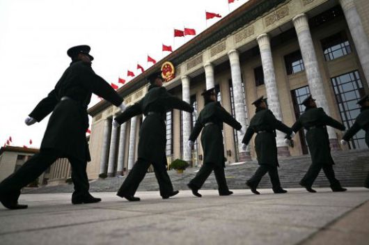 중국 인민해방군이 중국인민정치협상회의(정협)가 열리는 베이징 인민대회당 앞에서 경비를 서고 있다. AFP연합뉴스 |
