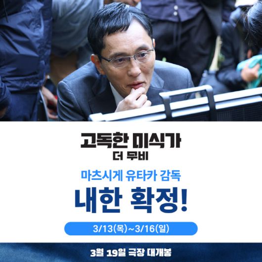 11개의 시즌 동안 이노가시라 고로 역으로 ‘고독한 미식가’ 시리즈를 이끌어 온 마츠시게 유타카가 ‘고독한 미식가 더 무비’의 감독이자 주인공으로서 한국을 찾을 예정이다. 마츠시게 유타카는 혼밥 열풍의 원조 ‘고독한 미식가’ 시리즈 외에도 드라마 ‘언내추럴’, 영화 ‘거북이는 의외로 빨리 헤엄친다’, ’남은 인생 10년’, ‘청춘 18X2 너에게로 이어지는 길’ 등 국내 관객들에게도 친숙한 다수의 작품에서 열연을 펼친 일본 대표 배우다. 작년 10월에는 ‘고독한 미식가 더 무비’가 제29회 부산국제영화제 ‘오픈 시네마’ 섹션에 공식 초청되어, 마츠시게 유타카가 직접 부산을 찾아 개막식 레드카펫부터 기자간담회, 오픈 토크, GV까지 다양한 행사를 소화하며 국내 관객들과 소통했다. 또한 최근 유튜브 채널 ‘꼰대희’, MBC 예능 ‘놀면 뭐하니?’에 출연해 시청자들의 반가움을 불러일으켰던 그가 3월 영화 개봉을 앞두고 다시 한번 한국을 찾아 관객들을 만난다. 이번 내한 기간에는 공식 기자간담회뿐만 아니라 무대인사를 비롯한 다양한 이벤트를 통해 예비 관객들과 만나는 자리를 마련하여 팬들의 뜨거운 성원에 보답하는 특급 팬서비스를 선사할 예정이다.