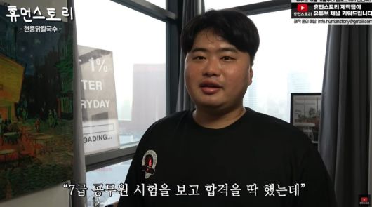 최근 유튜브 ‘휴먼스토리’에 올라온 ‘7급 공무원 합격하고 부모님 몰래 장사하는 이유’라는 제목의 영상에서는 유명 프랜차이즈 칼국숫집의 슈퍼바이저 윤정현(38)씨가 출연했다.
