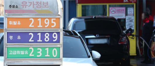 20일 서울 시내의 한 주유소 유가정보 간판 모습. |