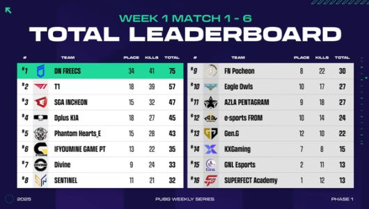 DN 프릭스가 'PUBG 위클리 시리즈(PWS)' 개막전부터 디펜딩 챔피언다운 활약을 펼치며 압도적으로 1위를 차지했다.
