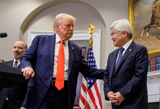 한편 중국의 위협에 시달리는 대만의 대표 기업 겸 세계 최대 반도체 위탁생산(파운드리) 업체 TSMC는 향후 4년간 미국에 총 1000억 달러(약 146조 원)를 투자하기로 했다. 트럼프 대통령은 3일 백악관에서 웨이저자(魏哲家) TSMC 회장과 이 계획을 발표하며 중국이 인위적인 위안화 약세를 통해 헐값 수출에 나섰다고 비판했다. 그는 “관세로 대응하겠다. 관세는 쉽고 빠르고 효율적이고 공정한 무역을 가능하게 한다”며 “관세를 부과하면 (이 문제로 해당 나라의 지도자와) 통화할 필요가 없다”고 했다.