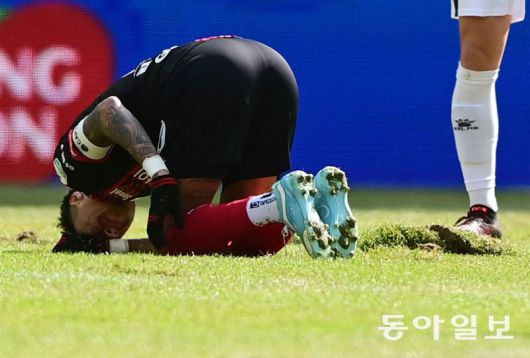 FC서울의 린가드가 3일 서울월드컵경기장에서 열린 김천과의 프로축구 K리그1(1부) 안방경기 전반 27분 방향 전환 과정 중 잔디가 움푹 파이면서 발목을 접질린 뒤 고통을 호소하고 있다. 주현희 스포츠동아 기자 teth1147@donga.com |