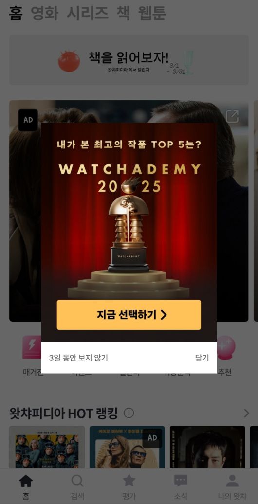 왓챠데미 투표는 모바일 애플리케이션(앱) 최신 버전 업데이트 후 이용할 수 있다.