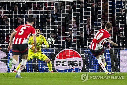 PSV도 반격을 시작했다. 전반 41분 코너킥 상황에서 파티가 더 용의 목을 감싸면서 파울을 범해 페널티킥이 선언됐다. 페널티킥을 랑이 성공시키면서 한 골 만회했다.