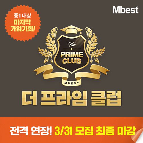 ‘더 프라임 클럽’은 2025년 3월까지 엠베스트 프라임 종합반/특목반 신규 결제한 중학교 1학년(25년 기준)이라면 자동 가입된다.