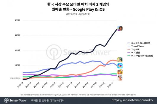 한국 모바일 캐주얼 게임 시장에서 퍼즐 장르는 지난 몇 년간 꾸준한 성장세를 보인 유일한 장르로 나타났다. 센서타워 게임 인텔리전스 데이터(2017년 1월~2025년 2월)에 따르면, 특히 퍼즐 하위 장르 중에서도 매치 머지 2의 성장이 두드러진 것으로 분석됐다.