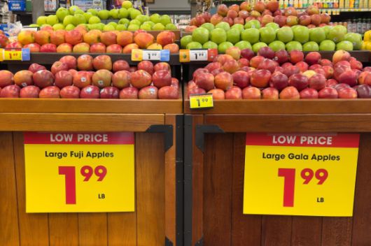 미국 캘리포니아주 로스앤젤레스의 한 시장에서 판매 중인 사과. EPA 연합뉴스 |