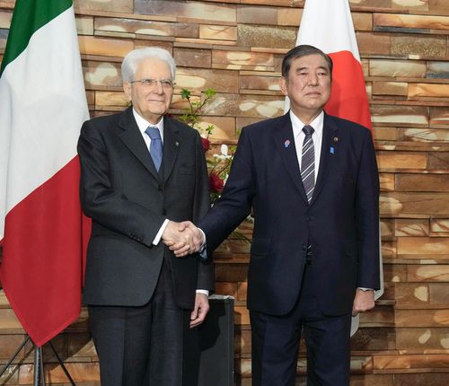 (도쿄=연합뉴스) 경수현 특파원 = 이시바 시게루 일본 총리가 5일 총리 관저에서 방일 중인 세르조 마타렐라 이탈리아 대통령과 회담을 갖고 양국 간 안보 분야 협력을 강화할 방침을 확인했다고 교도통신이 보도했다.