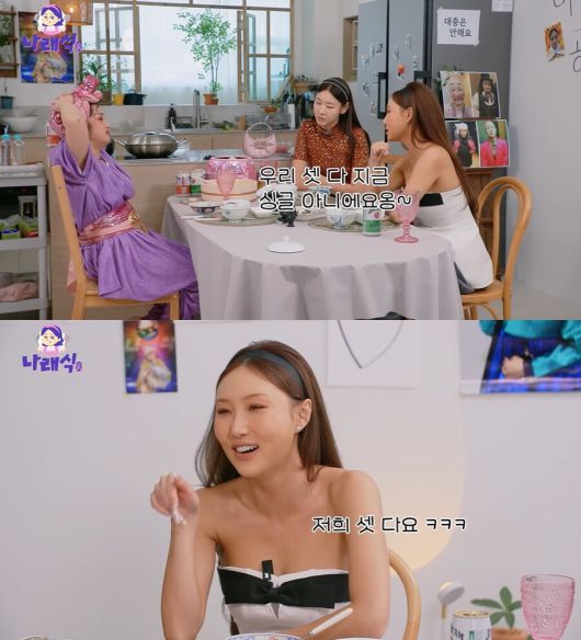 화사는 5일 박나래의 유튜브 채널 ‘나래식’에서 공개된 영상에서 “우리 셋 다 지금 싱글”이라고 교제 중인 사람이 없다고 밝혔다.