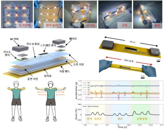 연구팀은 최대 700%까지 늘어나면서, 1000회 이상 물리적 변형 시도에도 안정적인 구조를 설계했다고 밝혔다. 늘림, 비틀림, 압축 등 변형에도 견디며, 변형이 반복돼도 사용 수명이 길다.