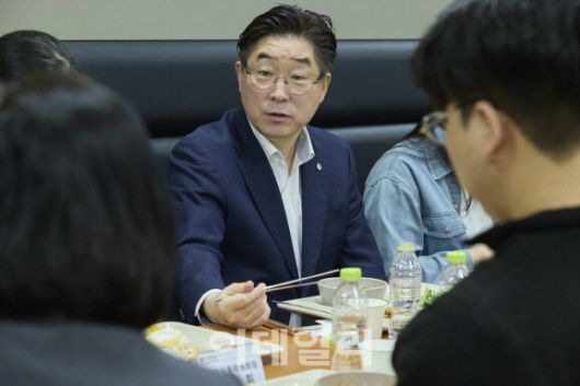 김동원 고려대 총장이 6일 오전 교내 교우회관 학생 식당을 찾아 학생들과 아침 식사를 하고 있다.(사진=고려대 제공) |