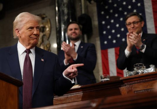 4일(현지시간) 워싱턴 DC 미국 국회 의사당에서 도널드 트럼프 미국 대통령이 합동 의회 연설을 하는 동안 JD 밴스 미국 부통령과 마이크 존슨 하원의장이 박수를 치고 있다. (사진=AFP) |