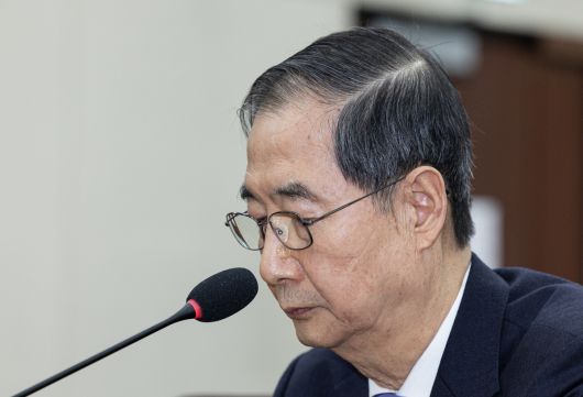한덕수 국무총리가 2월25일 국회에서 열린 ‘윤석열정부의 비상계엄 선포를 통한 내란 혐의 진상규명 국정조사’ 제5차 청문회에서 의원 질의를 듣고 있다. 뉴스1 |