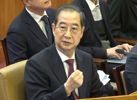 한덕수 국무총리가 지난달 20일 서울 종로구 헌법재판소 대심판정에서 열린 윤석열 대통령 탄핵심판 10차 변론에서 발언하고 있다./헌법재판소 |