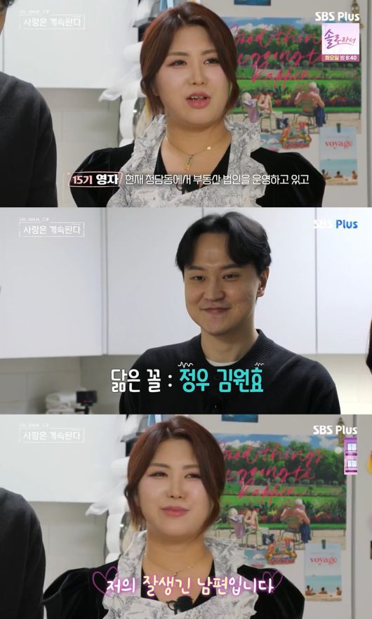 한편 지난해 3월 결혼식을 올린 15기 영자의 근황도 공개됐다. 이날 15기 영자는 자신의 남편을 소개했다. 그는 "부산 사람이다. 현재 청담동에서 부동산 법인을 운영하고 있고, 전형적인 경상도 상으로 정우를 닮은 것도 같고 김원효를 닮은 것도 같은 저의 잘생긴 남편"이라고 말했다.