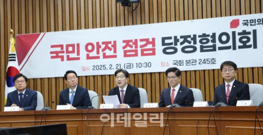 [이데일리 노진환 기자] 권성동 국민의힘 원내대표가 21일 오전 서울 여의도 국회에서 열린 국민 안전 점검 당정협의회에서 모두발언을 하고 있다. |